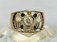 Kính phố vàng 2 màu 10k. Masonic logo đại bàng gắn viên xoàn thiên nhiên 4ly5 trắng tinh