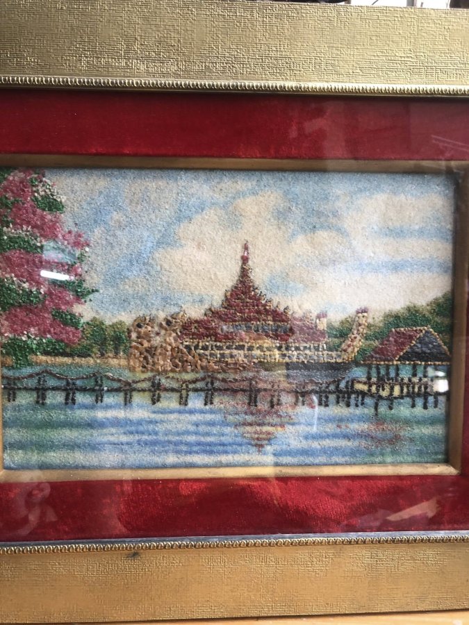 TRANH ĐÁ QUÝ/CÁT: BIỂU TƯỢNG THUYỀN RỒNG KARAWEIK (MYANMAR) (Hàng sưu tầm – Khung cổ điển