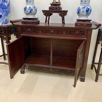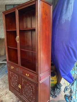 Bộ ba món tủ bày đồ và cặp đôn gỗ gụ