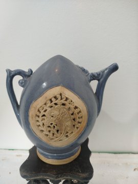 Giao lưu ấm gốm trái đào men lam đt 0983491274