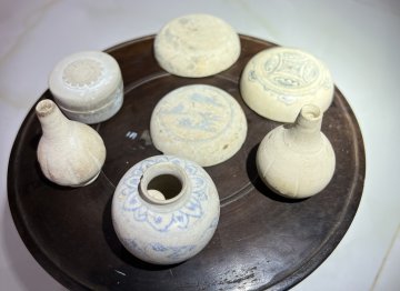 2 cái dĩa Sơn mài nhủ bạc Thập niên 40-50 Đk 25cm Giá 1000k
