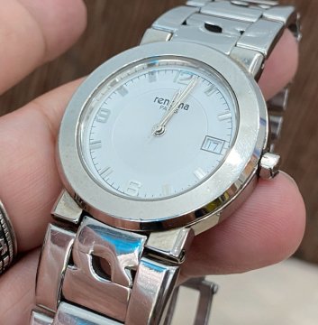 Renoma- Đồng hồ hiệu Pháp, mặt tròn trắng, vỏ thép đúc logo sáng bóng cực sang