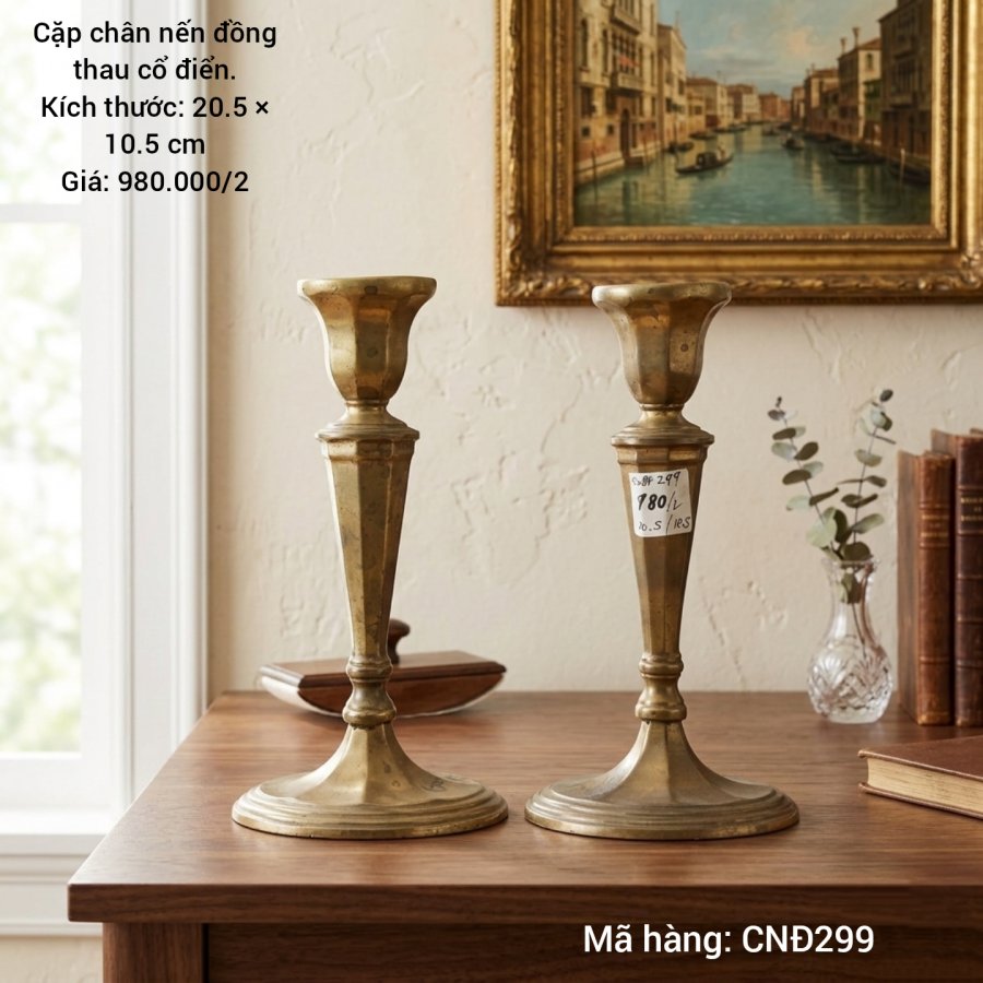 Cặp chân nến đồng thau cổ điển. Mã hàng: CNĐ299