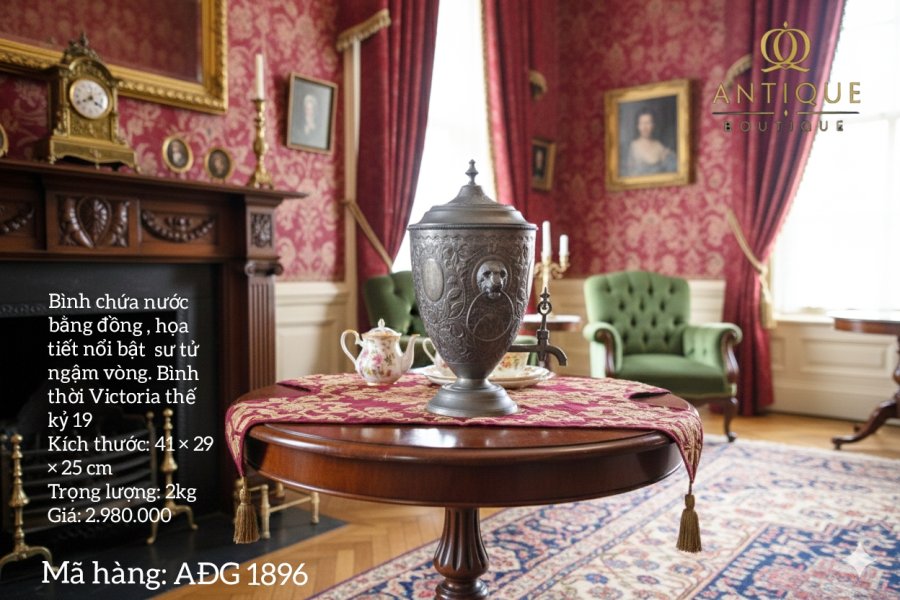 Bình chứa nước uống bằng đồng mặt sư tử ngậm vòng của Anh