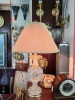 Cặp đèn ngủ bằng đồng, dáng thon gọn chóa bằng vải.