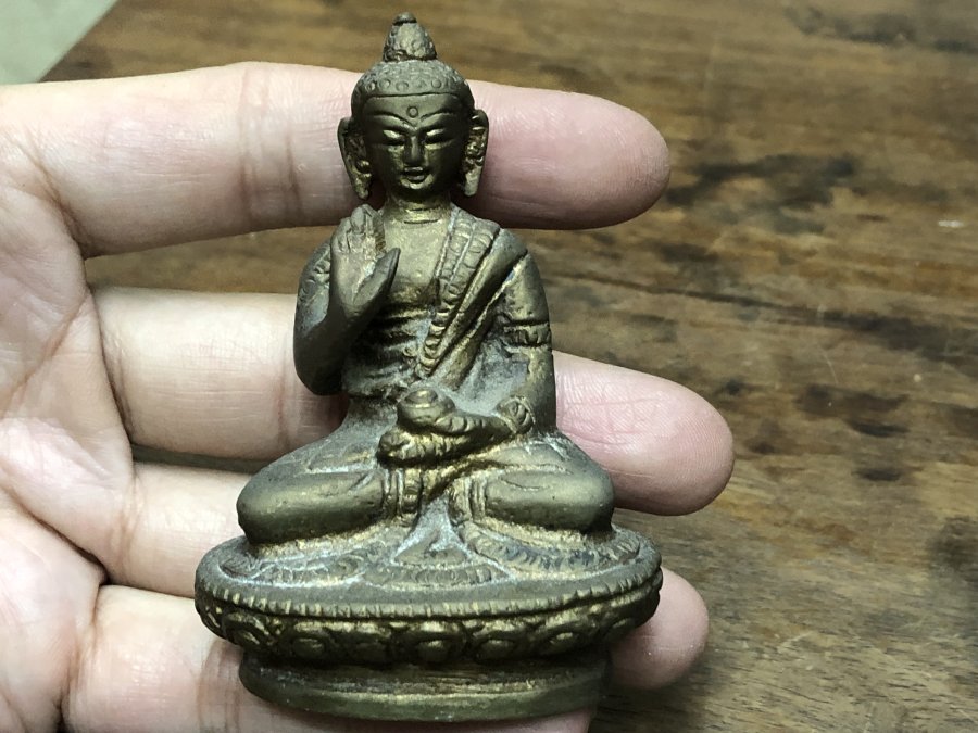 Đe cơ khí chân cắm đế gỗ viền đồng mini