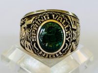 Kính phố vàng 10k. Đại học 1966 Hột xanh trơn tia có chữ dát vàng tuyệt đẹp. Size:20