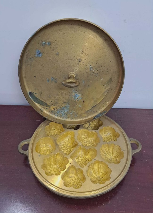 Khuôn đồng xưa bánh bông lan nặng 4kg đồng vàng chưa dùng hiếm. Zalo: 0776218163