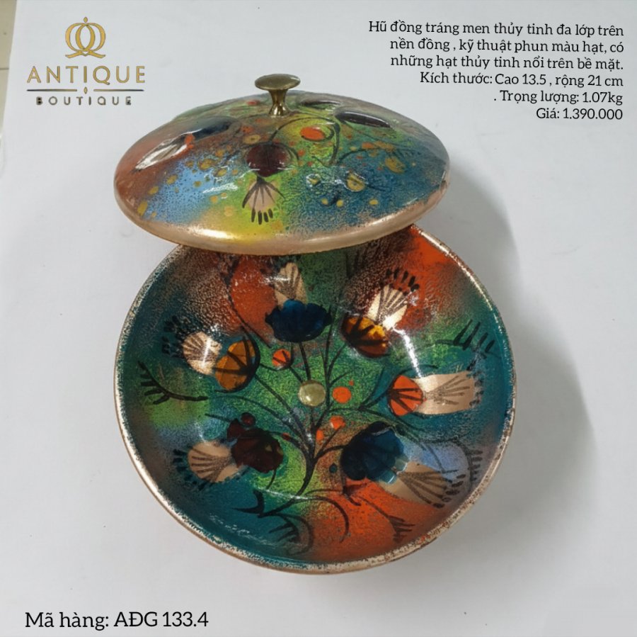 Hũ đồng Cloisonné, được làm thủ công bằng men trên đồng và các hạt thủy tinh nổi