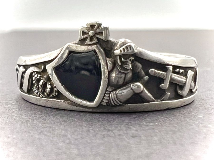 Nhẫn bạc NCO Academy Strategic Air Command phôm xưa hoa văn sắc nét đá xanh mo rất đẹp, cò