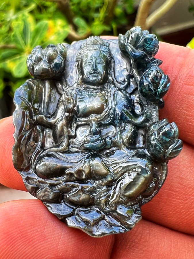 Mẹ Quan Âm saphia phan thiết hoa văn sắc nét rất đẹp, size 30x40mm, nặng 92.4ct, giao thôn