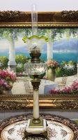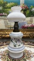 Đèn dầu Pháp cổ bầu pha Lê vẽ men