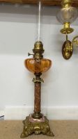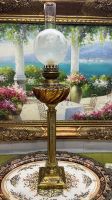 Đèn dầu Pháp cổ bầu pha Lê xoắn hổ phách