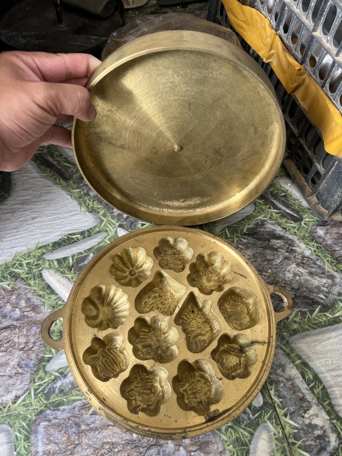 Khuôn bánh thuẫn bằng đồng xưa nặng 4kg loại nắp cao chưa dùng hiếm. Zalo: 0776218163