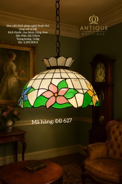Đèn Tiffany kính ghép nghệ thuật thủ công. Họa tiết bông hoa nhiều màu