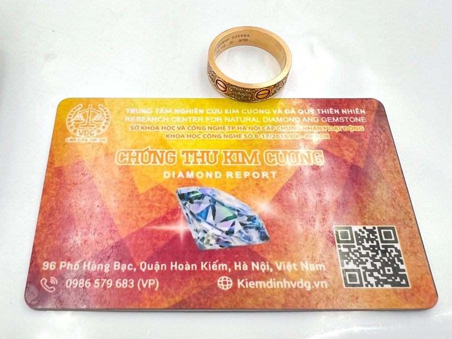 Nhẫn Carti.er HK vàng hồng 18k mới tinh hoa văn sắc nét đính 66v soàn thiên nhiên 1.3-1.5l