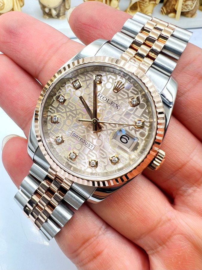Đồng Hồ Rolex Datejust 116231 dây vỏ thép đemi vàng hồng 18k mặt số vi tính hồng cọc kim c