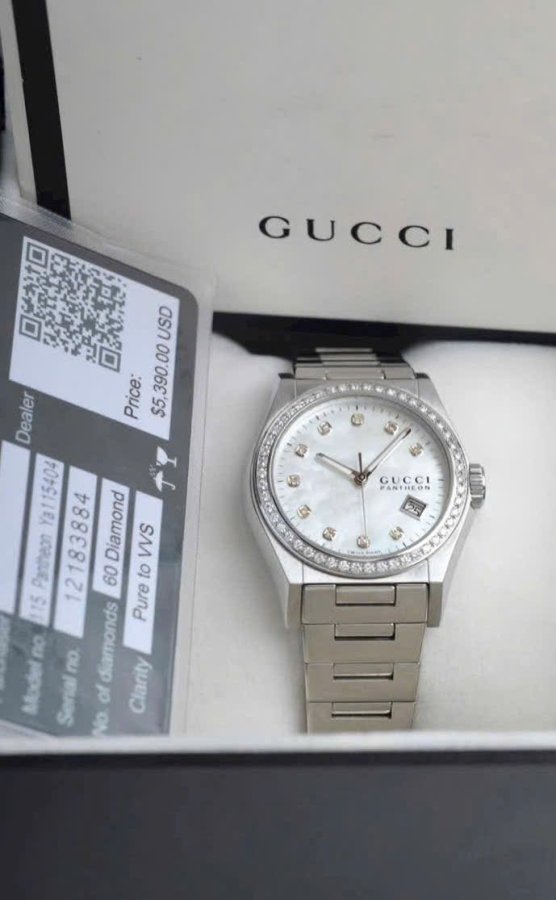 Đồng hồ Gucci Pantheon mặt xà cừ size 36mm uni*** mới tinh đính full soàn thiên nhiên rất