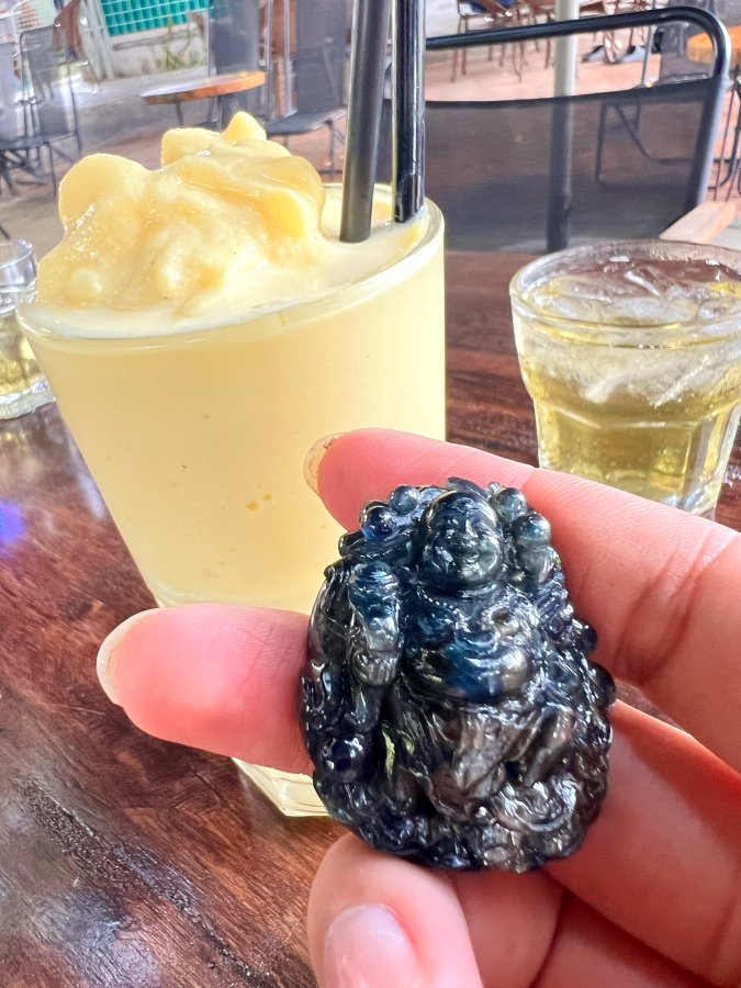 Cụ Di Lặc saphia phan thiết 3 màu Phúc Lộc Thọ phôm bự hoa văn sắc nét có sao hoa thị rất
