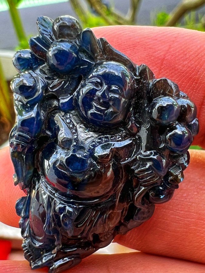 Mặt Di Lặc saphia phan thiết có sao hoa văn sắc nét rất đẹp, size 27x37mm, nặng 110.8gram,