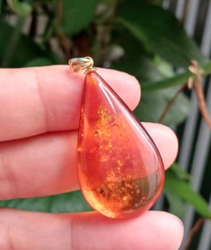 Mặt dây chuyền hổ phách nở hoa hình giọt nước, khoen vàng 18K cực đẹp
