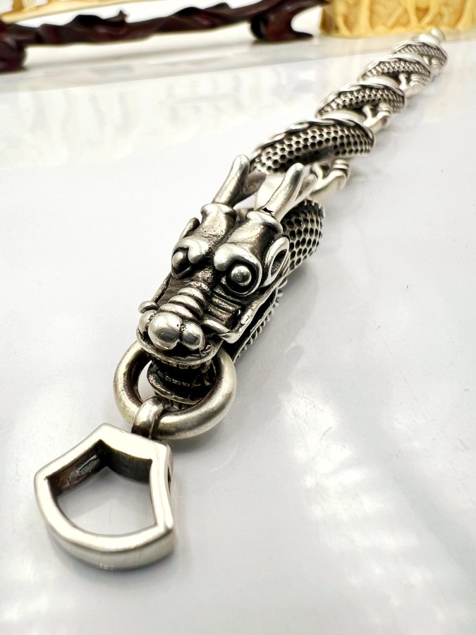 Lắc rồng bạc 925 Nhật mới tinh phôm bự hoa văn sắc nét rất đẹp, dây dài 23.5cm - ngang 16m