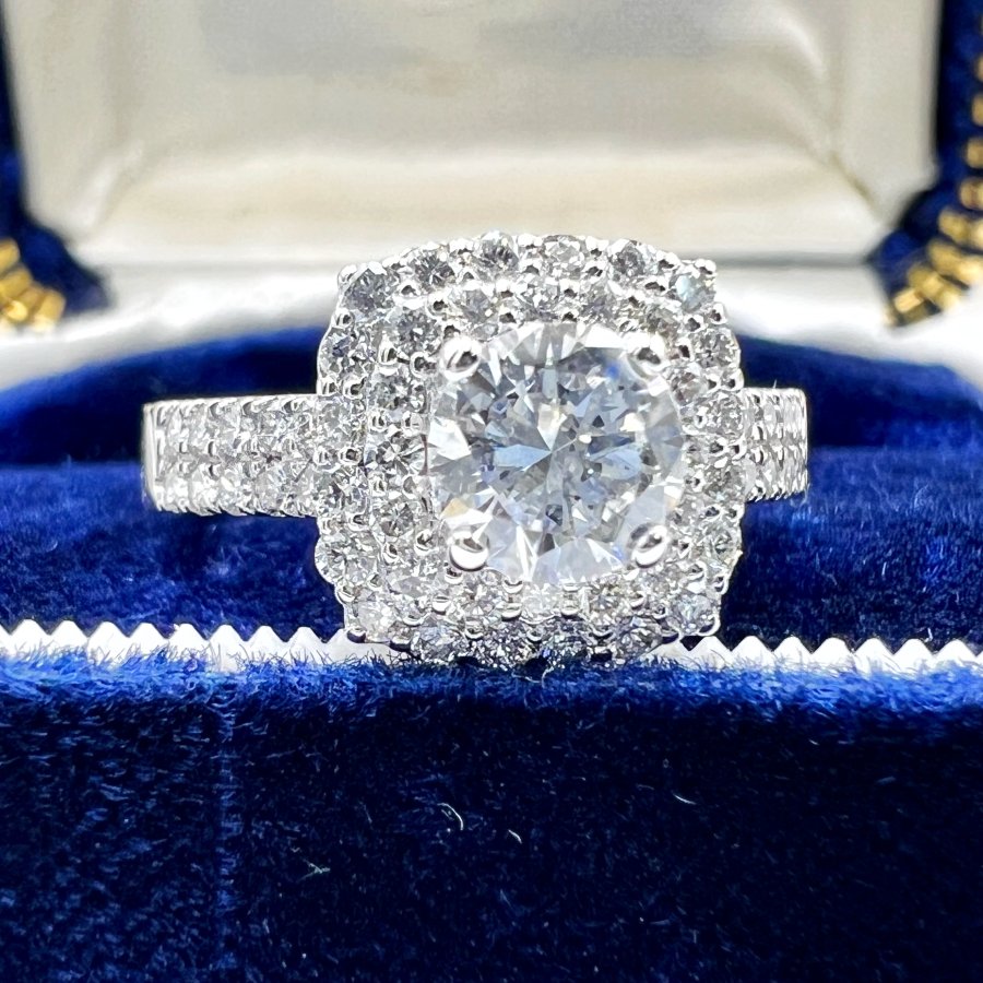 Nhẫn vàng trắng 18k USA Halo Diamond Ring mới tinh đính 78 viên soàn thiên nhiên 1.2-1.4li