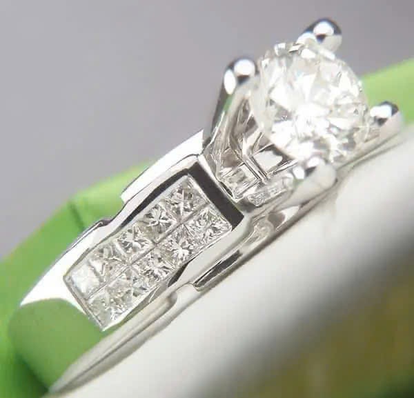 Nhẫn vàng trắng 14k hiệu LID Princess Diamond mới tinh đính full soàn thiên nhiên (28 viên