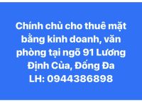 Chính chủ cho thuê mặt bằng kinh doanh, văn phòng tại ngõ 91 Lương Định Của, Đống Đa