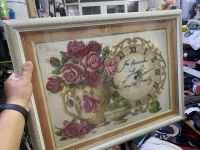 Đồng hồ tranh thêu chữ thập như hình, đồng hồ hư, bác nào mua về thay máy khác, kích thước