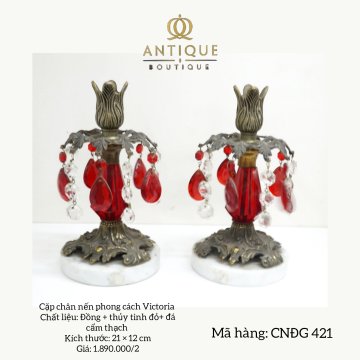 Cặp chân nến Victoria. Chất liệu: Đồng + thủy tinh + đá cẩm thạch