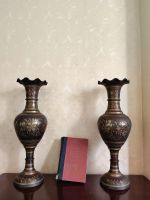 Cặp bình hoa bằng đồng hình hoa đươc khắc họa tiết bằng tay.