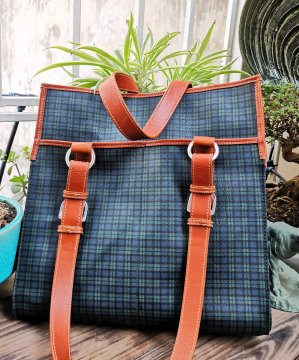 Túi lớn màu xanh lá cây kẻ caro xanh lam Polo Ralph Lauren VTG viền da. Mẫu túi khá hiếm