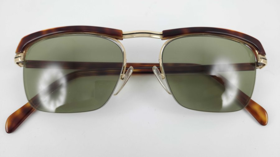 4604: Kính mát ESSEL NYLOR TOURNOI 31 Bọc vàng Size 53-21 150 FRAME FRANCE ngang kính 14cm