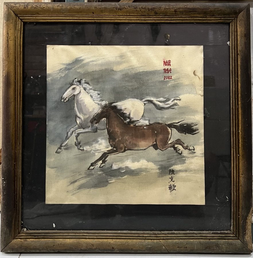 Tranh lụa Song Mã Phi Hùng Tác Giả Trần Văn Nghị Kt 30cm x 30cm chưa khung