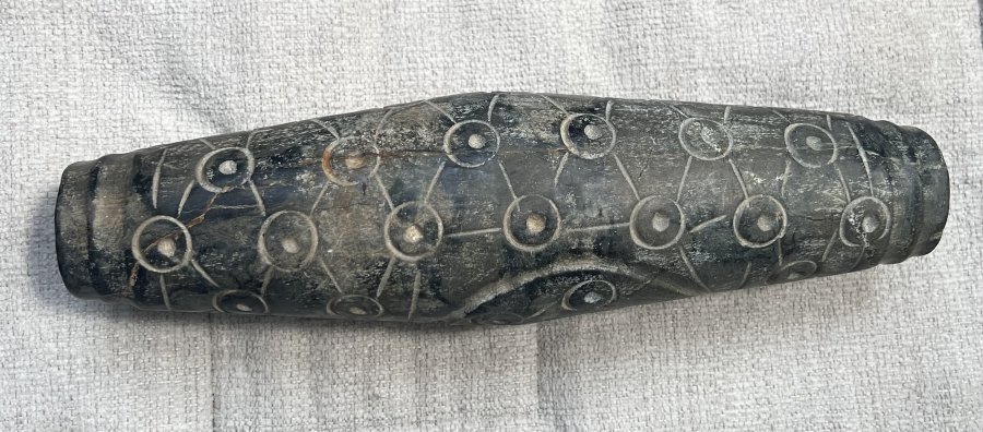 Hạt dzi cổ Tây Tạng, bùa hộ mệnh thiên thạch cổ, Dài 30cm. Đk 27cm Nặng 2,8kg