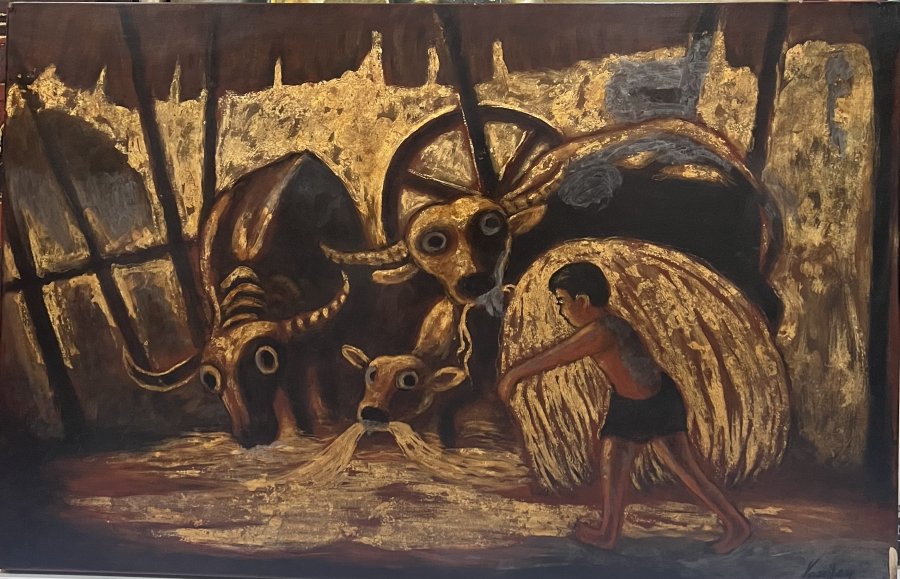 2 bức tranh Sơn dầu Một tác giả Kt 63cm x 80cm + 60cm x 70cm Giá 1999k
