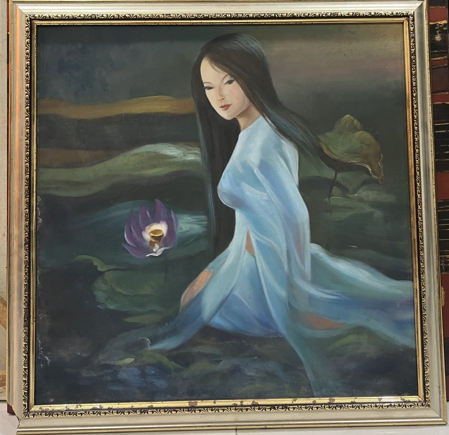 Nàng và Sen Tranh sơn dầu Kt 50cm x 50cm