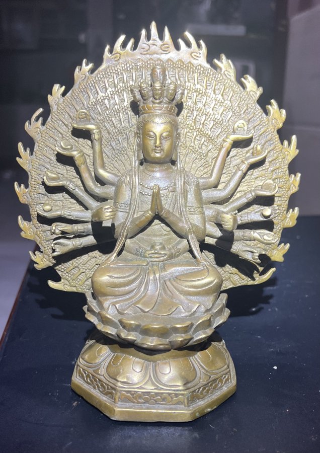 Chuẩn Đề Bồ Tát Chất liệu đồng vàng Cao 22cm. Ngang 18cm