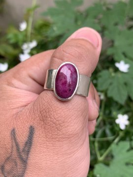 Nhẫn bạc ngoại ruby thiên nhiên.