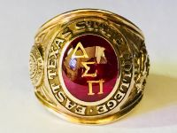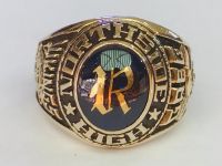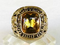 Kính phố vàng 10k. TEXAS xưa 1963 có lót. Hột đỏ huyết có chữ dát vàng tuyệt đẹp. Size:19
