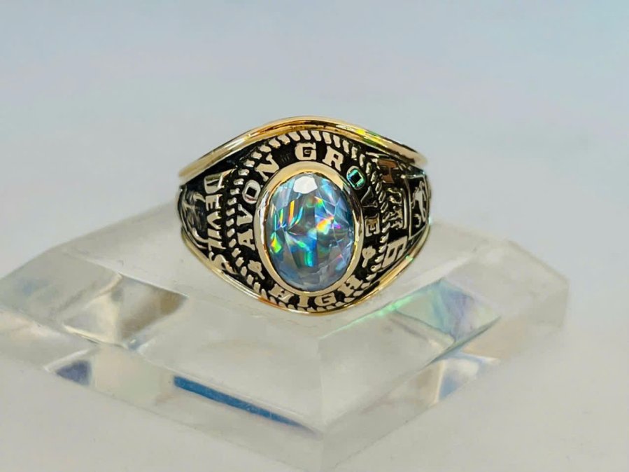 Kính phố vàng 10k. Đại học 1970 xưa có lót.Hột đen bóng có chữ dát vàng tuyệt đẹp.
