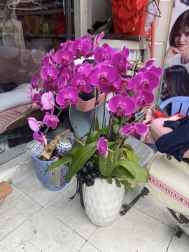 Hoa lan 5 cành cao 1m, bình sứ, giá 300k