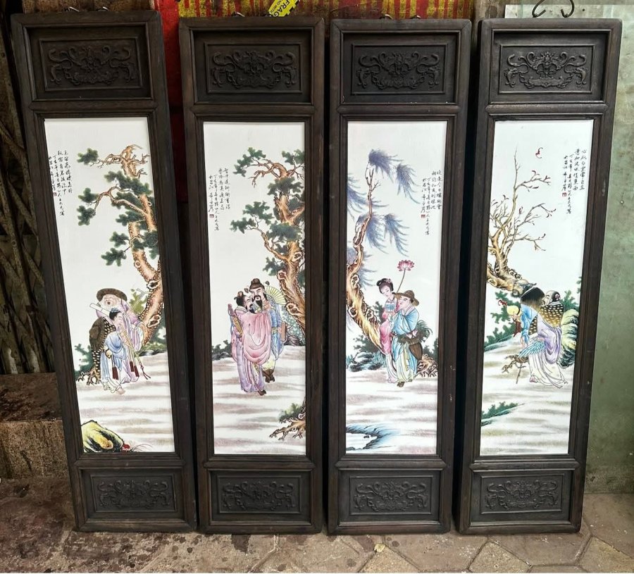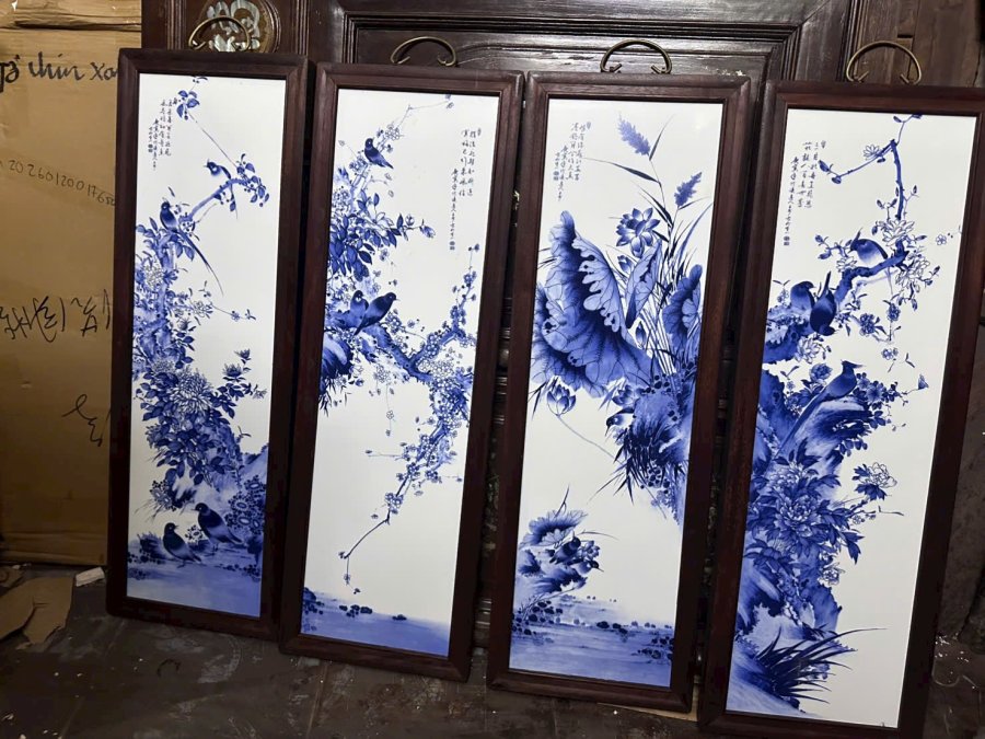 Bộ tranh sứ men tràm Kt 27x 80cm