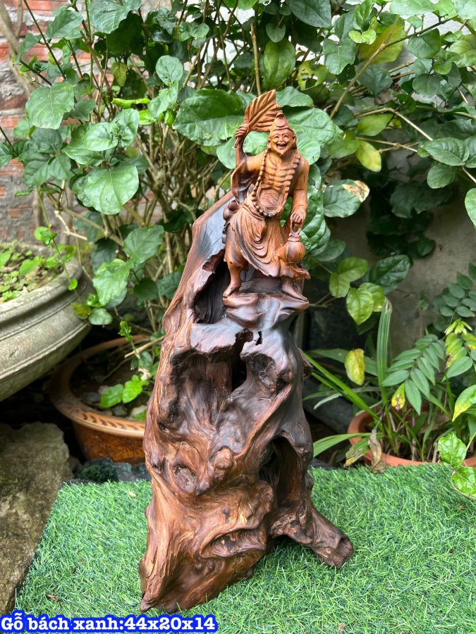 Tác phẩm cụ Tế công Tượng và lũa ghép đều bằng gỗ bách xanh Kích thước:cao 44x20x14