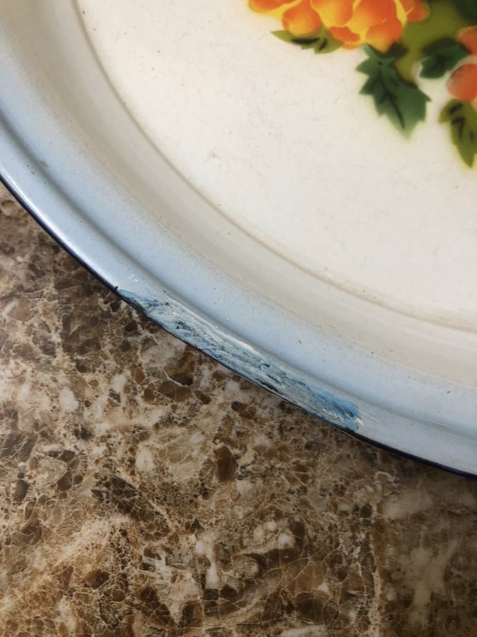 Mâm Sắt Tráng Men Đại – Kỷ Vật Thời Bao Cấp (Họa Tiết 4 Hoa Hồng) Một món đồ xưa mang đ