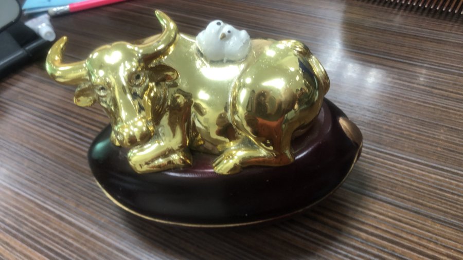 Kim ngưu bột đá mạ vàng kt 13,5x8,5 cao 10,5: 140k + ship