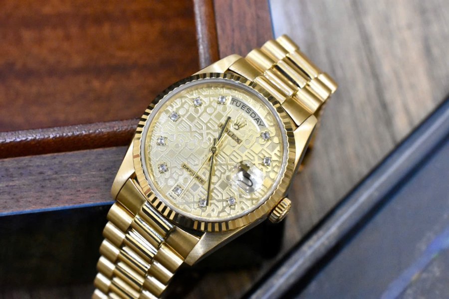 Rolex Day Date18238 , Yellow Gold 18kt , champagne jubilee asscher diamond 36mm