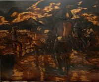Tranh Sơn mài cu vẽ cảnh đồng quê