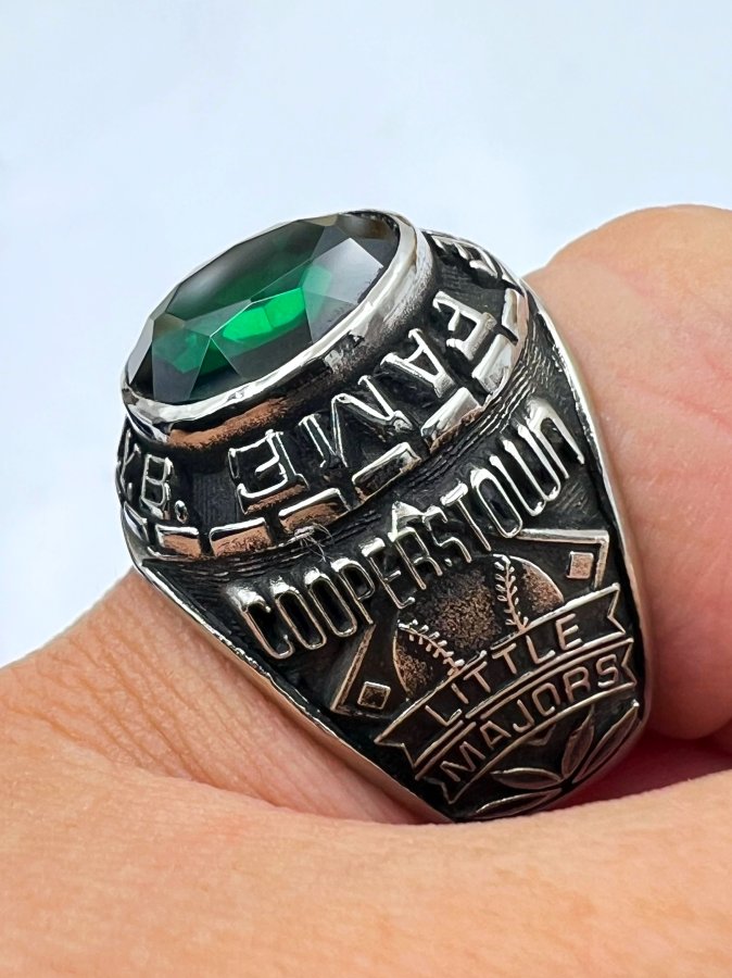 Nhẫn hợp kim A.Y.B Hall Of Fame mới tinh hoa văn sắc nét đá xanh heniken đa giác rất đẹp,